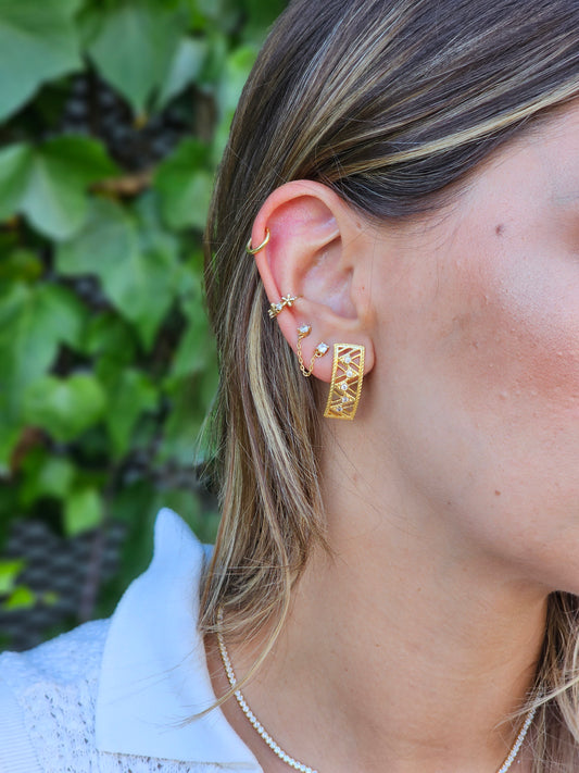 Brincos Meia Flor em Prata Banhada a Ouro