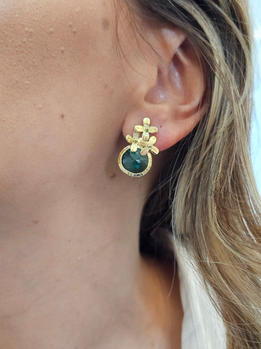 Brincos com Flores em Prata Banhada a Ouro