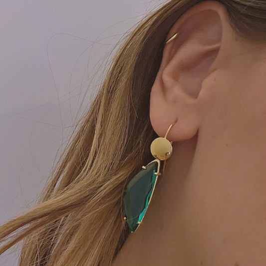 Brincos Prata Banhada a Ouro com Pendente Pedra