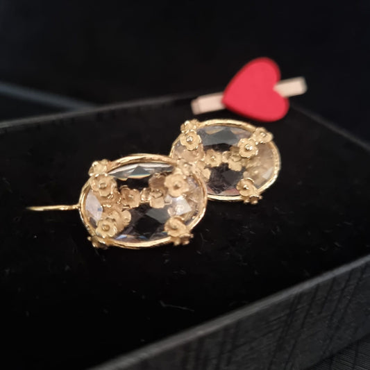 Brincos em Prata Dourada e Pedra Hidrotermal